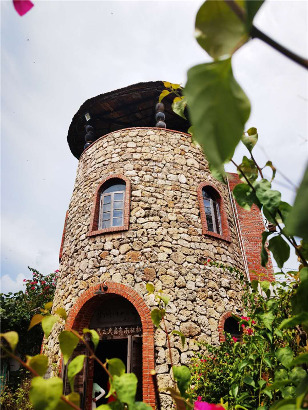 南極村藝術家部落里,連君的燈塔圖書館民宿利用當地珊瑚石砌成