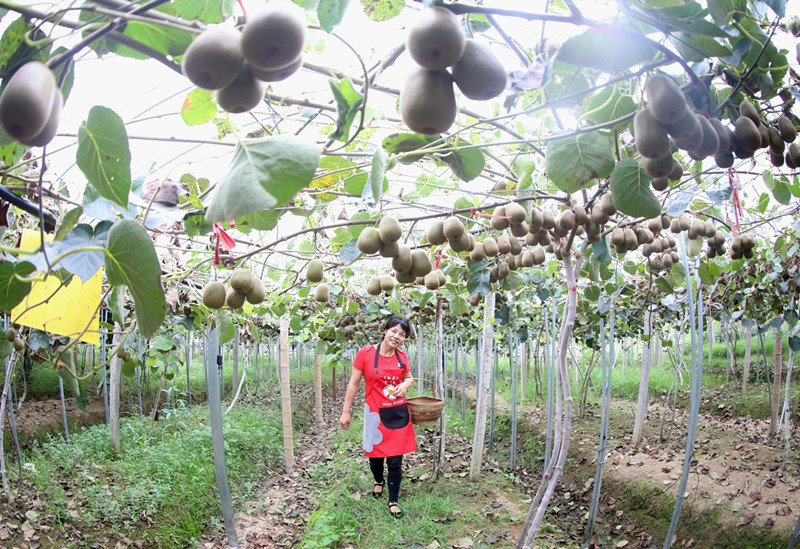 【香港商報網訊】9月16日,安徽歙縣森村鄉紹村三紅果業女子專業合作社負責人淩雪萍(右二)與社員在採摘紅陽紅心獼猴桃。