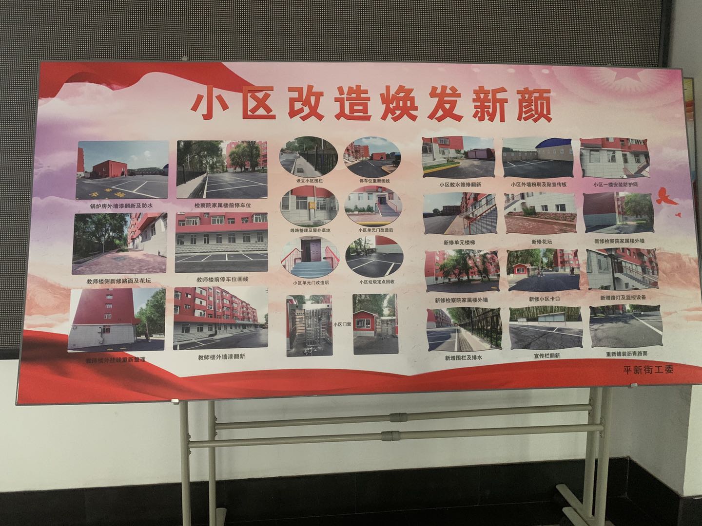 平房區平新街道家屬樓是改造的試點小區,也是曾經的棄管小區。據居民反映,過去,這個小區道路坑窪不平,晴天一地土,雨天一地泥,樓房外牆脫落破損嚴重,疫情期間防控主要靠人力。日前,區城投公司、平新街道對小區進行全方位改造,改善小區環境,實行小區封閉管理,變人防為技防,徹底改變小區面貌。小區改造總建築面積17826平方米。工程改造內容主要包括外牆裝飾、室內外樓梯粉刷、屋面防水、瀝青混凝土路面銑刨新鋪、行人路鋪裝、花池改造、安裝鐵藝圍欄、防盜網、更換單元門、樓道粉刷、安裝樓道照明燈和庭院燈,目前,小區共安裝樓宇對講156套、綠化面積833m2、車位劃線1692m,設置門衛崗亭1座,安裝車行道閘自控系統、行人路閘人臉識別及人體測溫系統、監控系統、停車場管理系統各1套。工程於2020年6月25日開工,經過周密研究施工進度計劃、科學部署工序安排,工程歷時41天,至8月4日竣工驗收完畢。居民將面貌一新的小區命名為順意小區。