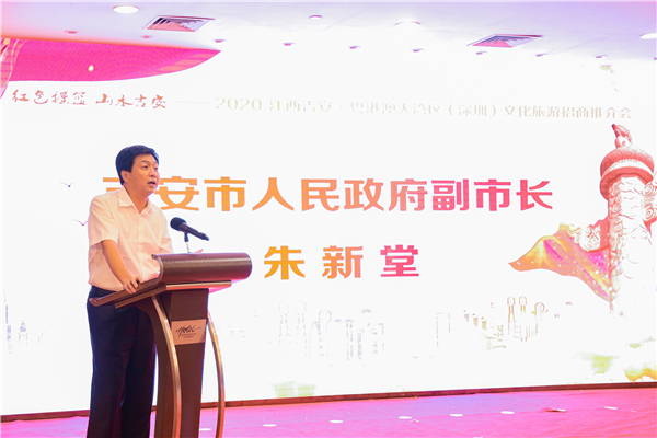 吉安市人民政府副市長朱新堂在致辭中說,2021年深吉高鐵即將開通,「革命的搖籃」與「改革開放的搖籃」時空距離進一步拉近。深圳作為粵港澳大灣區重要中心城市,充滿活力、日新月異,希望在深化「3+2」合作的基礎上,全面對接、深度融入粵港澳大灣區文旅產業布局,對接旅遊市場,開發旅遊資源,共同促進兩地文旅深度融合、發展共贏。