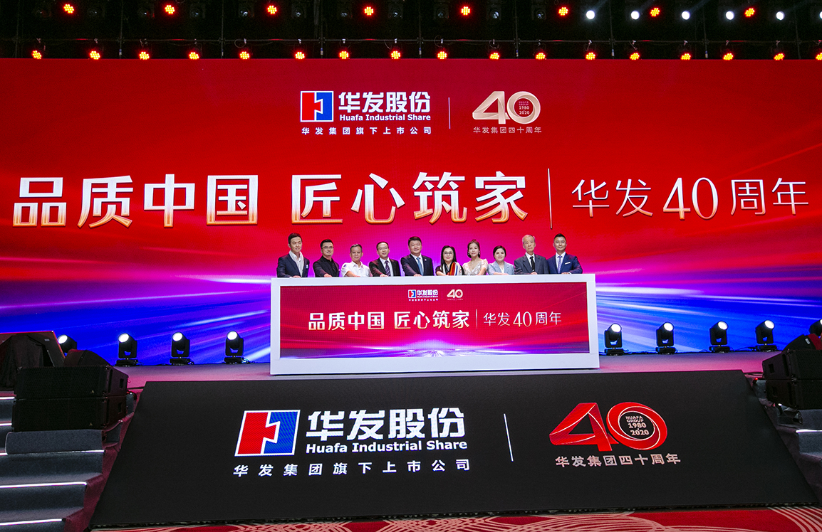 在現場嘉賓和線上觀眾的共同見證下,華發股份董事局主席李光寧,董事局副主席、總裁陳茵,董事局副主席、執行副總裁郭凌勇與業主代表和合作夥伴代表共同按下啟動鍵,品牌口號「品質中國 匠心築家 華發40周年」正式亮相。