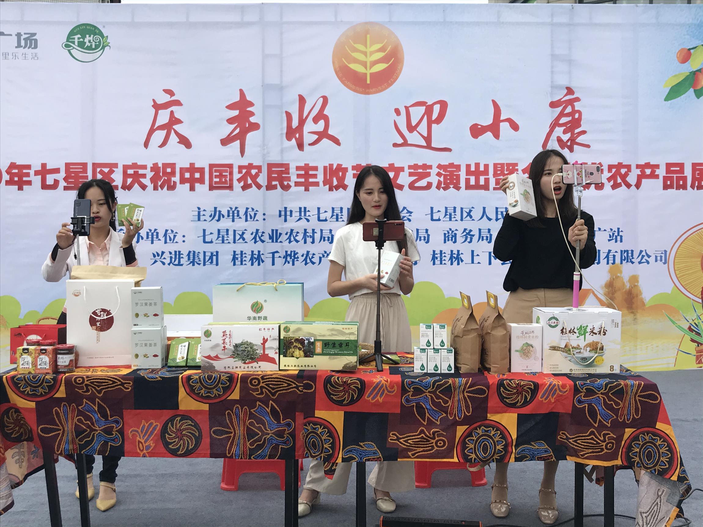 【香港商報網訊】9月19日,廣西桂林七星區在興進廣場開展2020年慶祝中國農民豐收節名特優農產品展銷活動,以「慶豐收,迎小康,助產業」為主題,展示七星區的豐收盛況和文化魅力。值得一提的是,本次活動七星區首次在農業領域引進「線下+線上」的網絡直播帶貨形式,為現場二十多種優質農產品進行宣傳和銷售。