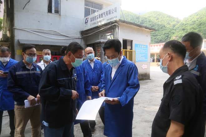 在深南燃氣沙頭角液化氣站,鄧飛波一行認真聽取了該燃氣站日常安全管理工作開展情況,向工作人員詳細了解存放點氣罐儲存數量、安全人員配置、從業人員培訓、防範措施落實、應急值班值守、應急預案演練和氣瓶信息化管理情況。為檢驗燃氣站的應急處置能力,鄧飛波要求燃氣站啟動應急預案,現場檢查應急工作人員應急裝備操作使用。檢查中,鄧飛波要求燃氣站吸取近期各地事故教訓,加強日常安全巡查和隱患排查,保持存儲場所防爆設備完好,有效防範事故發生。同時要強化宣傳教育,深入城中村和老舊住宅小區,上門為轄區居民普及科學正確使用瓶裝燃氣的方法,提高廣大居民使用瓶裝燃氣的安全意識,保障居民用氣安全。
