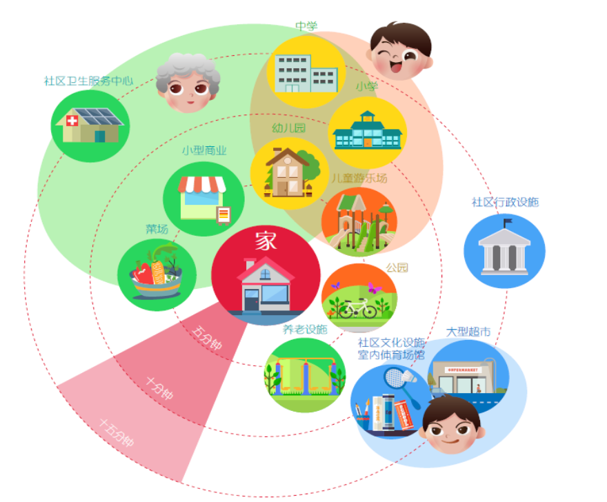 根據研究提示,未來大興機場臨空區將為不同年齡層、收入和國籍的人才提供包容性的住宅方案,針對人才需求建設包括豪華公寓、共居空間、結合一樓臨街層零售的商務區公寓等不同類型的住宅單元。醫療、教育同步兼顧,臨空區整體建設遵循15-20分鐘社區的規劃導則,在步行可達範圍(800米半徑)內,為居民配備生活所需的基本服務功能和設施配套。