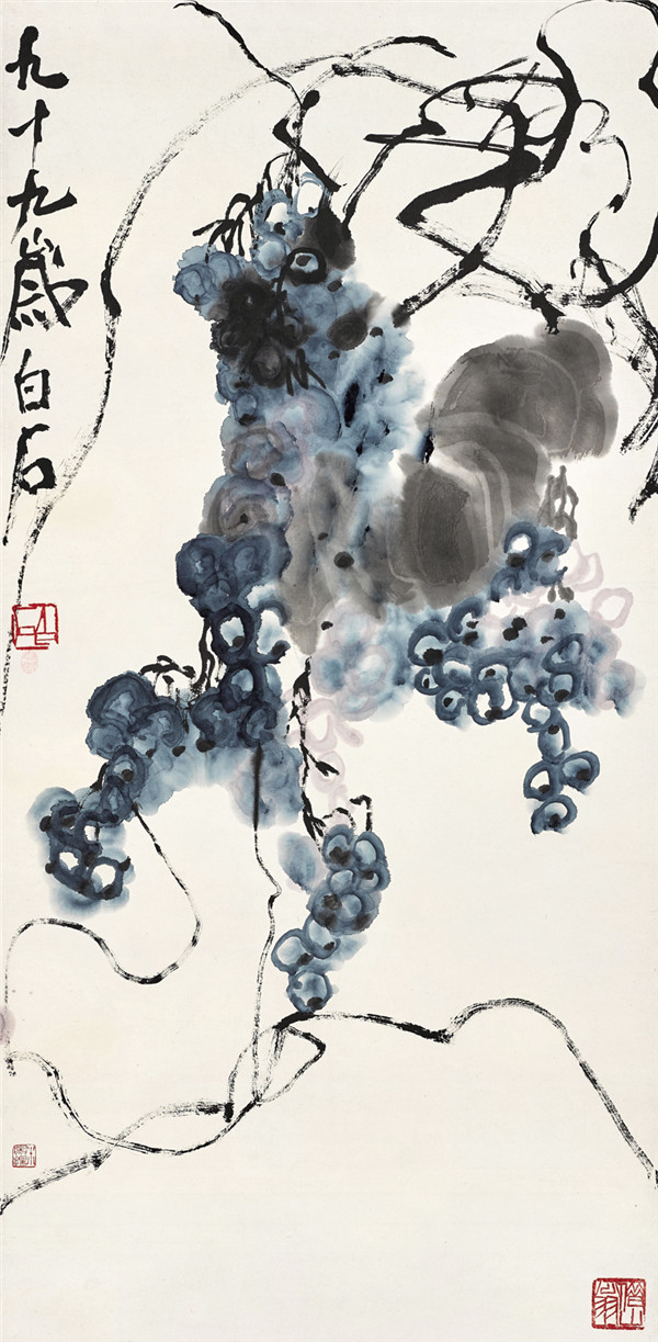 齊白石《紫葡萄》設色紙本 立軸 68.5×33.5cm