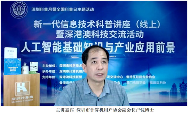 【香港商報網訊】9月22日晚,作為「深圳科普月暨全國科普日主題活動——新一代信息技術科普講座(線上)」 第三場,《人工智能基礎知識與產業應用前景》線上直播活動正式舉行。深圳市計算機用戶協會副會長、教授級高工盧忱博士擔任主講嘉賓,演講主題為《人工智能基礎知識與產業應用前景》。