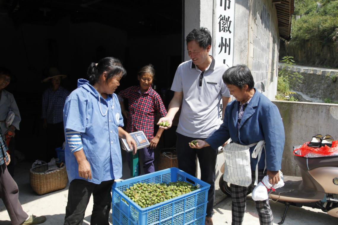 “2010年,第一批嫁接改良後的香榧樹開始零星掛果,欣喜的是品質上和諸暨香榧完全相同,當年15斤香榧共賣了2400元。”小容原生地香榧改良成功讓範建雨看到了發展前景,作為一名黨員,他想著要帶領群眾一起改良香榧共同致富。按照村黨支部“黨建引領、產業富民”的要求,小容村成立了香榧產業支部,通過“支部領航、幹部帶頭、黨員示範”帶動村民開展大規模的老香榧林改造,力促資源優勢轉換成效益優勢。通過無償傳授香榧嫁接技術,指導村民統一做好香榧林管理和保底價回收,小容自然村先後完成高位嫁接香榧林面積2100畝。