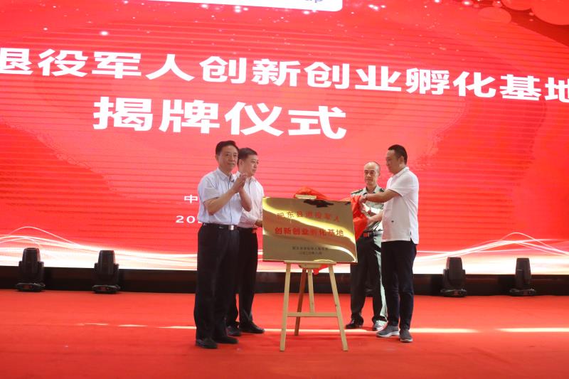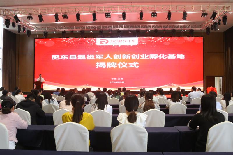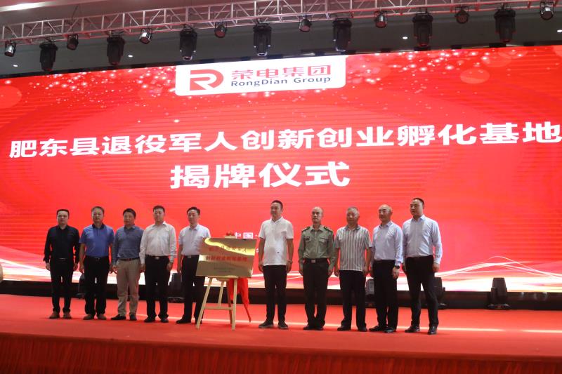 當天,安徽省退役軍人事務局副廳長梅德林,安徽省退役軍人事務廳就業創業處處長蔡元和,肥東縣縣委常委,縣人武部政委劉澤生,榮電集團執行董事侯愛明共同肥東縣退役軍人創新創業孵化基地揭牌。