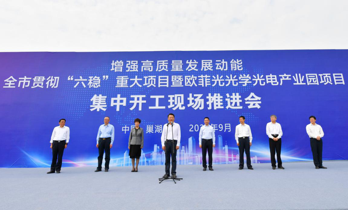 【香港商報網訊】9月26日上午,安徽省巢湖市舉行「增強高質量發展動能全市貫徹「六穩」重大項目暨歐菲光光學光電產業園項目集中開工現場推進會」。