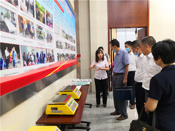 《規範》團體標準發佈會前,黃沙水產市場市場管理方為參會有關領導講解衡器使用情況以及水產市場衡器檢定唯一的檢定鉛封標識、維修鉛封標識、綠色檢定標識