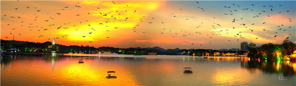 夜幕降臨的西湖白鷺歸巢 (資料圖、惠州市政府新聞辦供圖)
