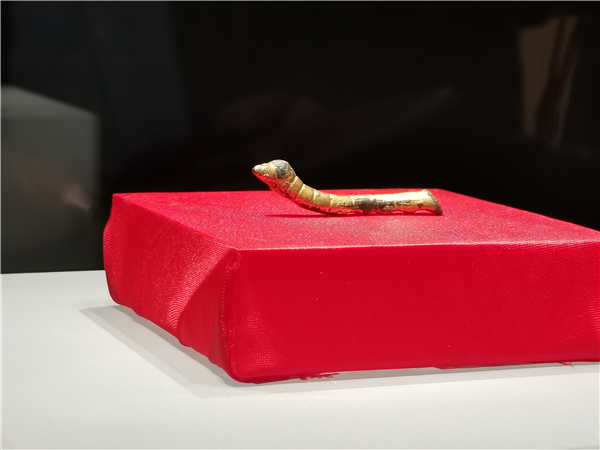 鎏金銅蠶質地為銅,體積如真蠶大小,作仰首吐絲,栩栩如生