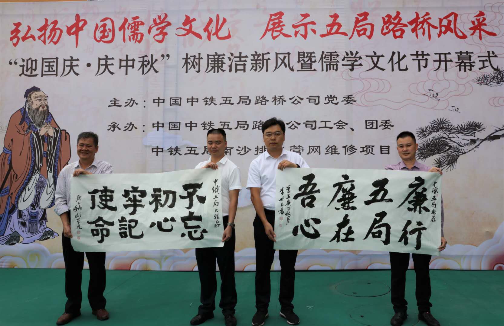 【香港商報網訊】記者 李苑立 報導:9月28日上午,記者走進廣州南沙東涌鎮中鐵五局管網項目工地,一幅幅蒼勁有力的孔子經典名句書法作品映入眼帘。項目經理李秀德告訴記者,在中秋、國慶「雙節」來臨前夕,工地特地在孔子誕辰日(9月28日孔子誕辰日)邀請知名書法家來到工地為一線職工揮毫潑墨,激勵員工把失去的時間奪回來,確保年內的建設任務如期完成。
