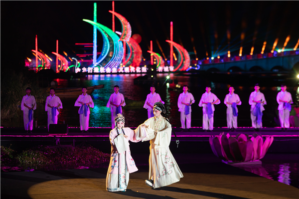 9月28日晚,周莊燈區亮燈儀式主題演出以《憶夢》《尋夢》《圓夢》《築夢》四個篇章,用講故事的方式將現場來賓的思緒帶入歌舞表演之中,通過水鄉實景沉浸式的情景演繹呈現一個「花開同心夜周莊,兩岸同根共此時」的中秋之夜。