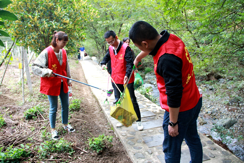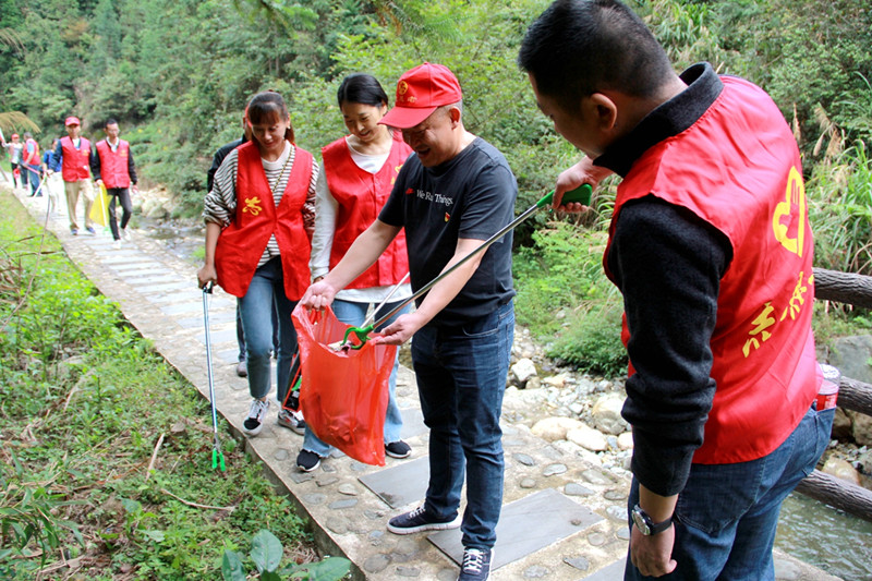 黨員志願者們沿著源芳鄉梓源村通往新娘房瀑布旅遊道路,用垃圾夾將遊客、路人隨手丟棄的煙頭、煙盒、塑膠袋等垃圾逐一撿拾起來,集中放入景區放置的垃圾桶、垃圾池內。用自己的實際行動踐行文明旅遊良好風尚,為美化淨化鄉村旅遊衛生環境,奉獻公路人的一分光和熱。(曹集林 項玲 吳敏)