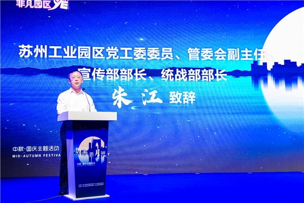 啟動儀式上,蘇州工業園區黨工委委員、管委會副主任、宣傳部部長、統戰部部長朱江致辭,他表示:「今年4月以來,園區精心策劃『非凡園區YE』品牌活動,舉辦了一系列豐富多彩、極具園區特色的主題活動,充分激活夜經濟、促進新消費,產生了良好的品牌效應。本次『城裏的月光』中秋·國慶主題活動充分展示了園區開發建設的日新月異,全力營造出花好月圓的節日氛圍,打造了現代范、國際范的『非凡園區YE』新亮點。」