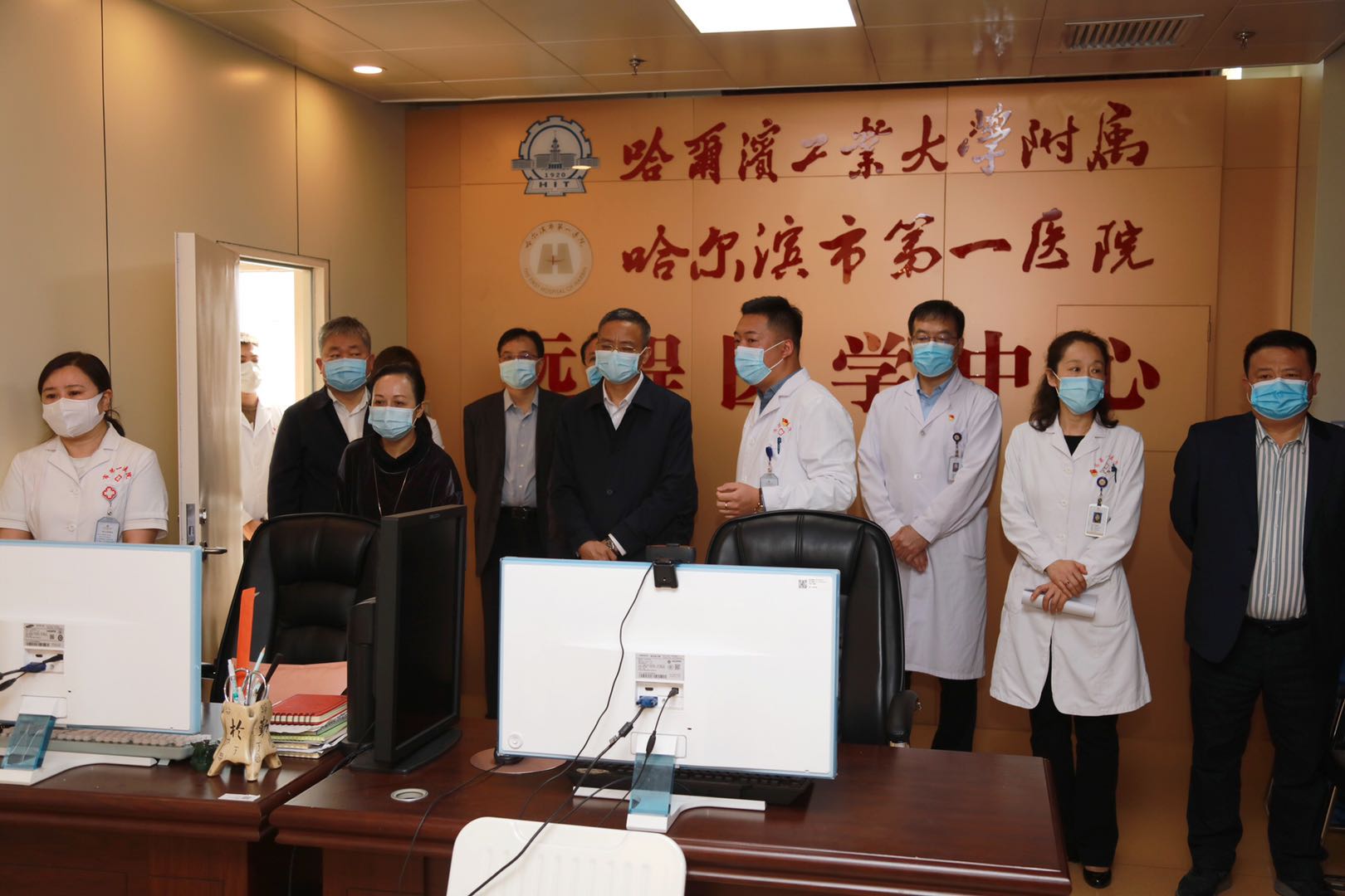 座談會由哈爾濱市第一醫院黨委錢朝霞書記主持。杜繼偉副院長從歷史沿革、醫院簡介、抗疫工作、風雨同行四個方面做了專題報告。當介紹到百年醫院擔當作為,在本院、省內、支援湖北,多點抗疫,打滿全場,生命至上時,孝感市的同志流下感動的熱淚,在場人員感同身受。