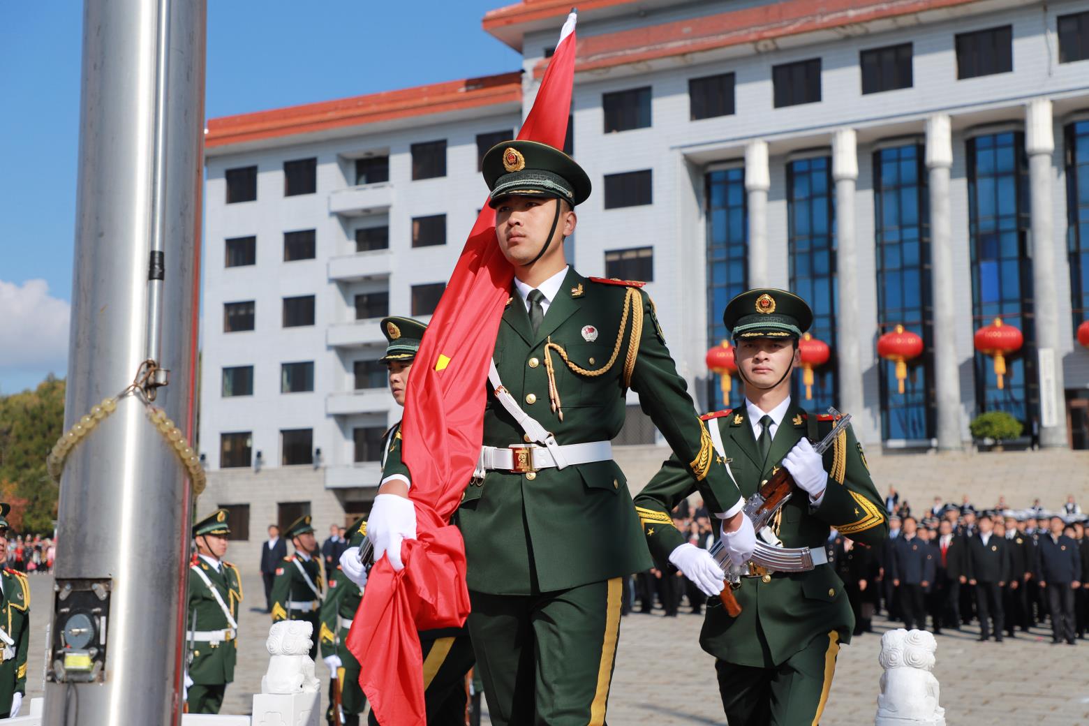 當國歌響起,鄉鎮、企業、哨所……邊境線上,一面面五星紅旗同時升起!這個場面讓我們感動,這份情感讓我們難忘,這種力量叫祖國,這份情感是感恩!這一刻,邊城人民向着國旗飄揚的方向敬禮,向祖國致敬,祝福祖國,繁榮昌盛,實現偉大復興。(王琳)