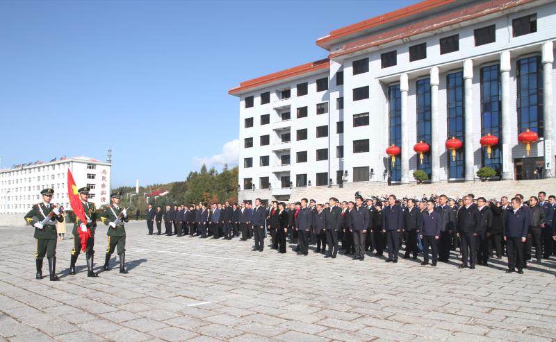 黃士偉、王永平、高寶平、李敬國等市級四個班子領導與各界代表一起,在綏芬河黨政辦公中心廣場參加升旗儀式。