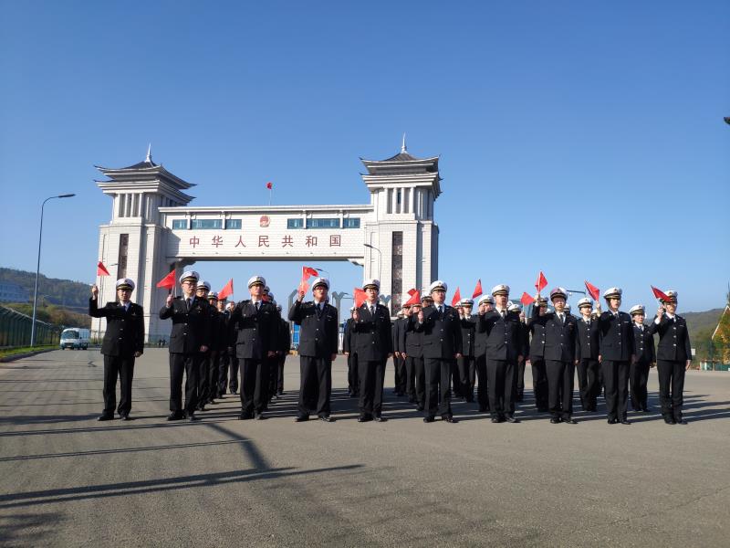公路口岸國門下,是疫情防控期間,阻擊新冠病毒的第一道防線。今天早上,駐守國門的口岸聯檢部門列隊整齊,以昂揚的精神狀態迎接偉大祖國71華誕。在國旗和國門下莊嚴宣誓:守好祖國北大門,保衛祖國安全,祝福祖國繁榮昌盛。
