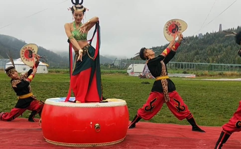 當天,還有來自臨夏的花兒、富有野性的絲路男子樂舞、柔美飄逸的女子古典舞也來同台獻藝。儘管當天的法台山景區煙雨濛濛,絲毫沒有抵擋遊客的熱情,大家紛紛拿出手機記錄下精彩瞬間 ,久久不願離去。據悉,十一期間有絲路飛天群舞也來法台山,為大家帶來更精彩的表演。(寇剛 顧若馨)
