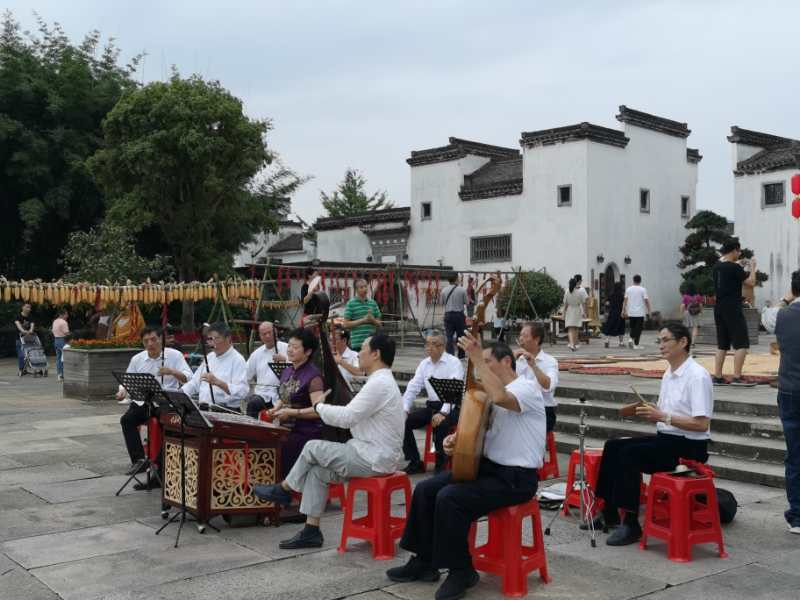 【香港商報網訊】小橋流水,琴瑟和鳴,10月3日,在安徽黃山市徽州區潛口鎮唐模七天井廣場,一場別具特色的國樂演奏會正在上演,優美的曲調從古箏、笛子、琵琶、二胡等傳統樂器中傳揚而出,與身後的曬秋景色共同形成了一幅美麗的秋日畫卷,讓廣大遊客如同置身秋天童話裏一般,如癡如醉。