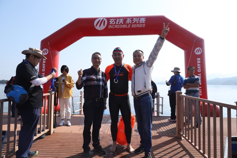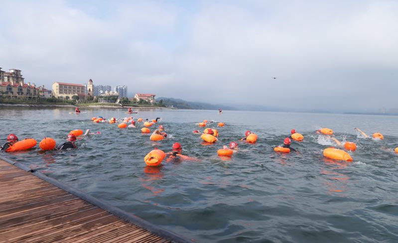 【香港商報網訊】褪去炎炎夏日的燥熱,未迎蕭瑟冬日的寒冷,金秋十月,微風送爽,一場百人規模的泳渡賽在黃山太平湖玄鐵營地舉行。10月10日,上午8時30分,伴隨著響亮的汽笛聲,2020 EMBA中國商學院公開水域游泳友誼賽鳴槍開賽。與去年近4000人規模的太平湖國際泳渡賽不同,本次比賽僅面向EMBA中國的聯盟商學院校友,並增加了露營燒烤、篝火晚會等周邊活動,是太平湖風景區打造體育旅遊產品,發展運動休閒產業的全新嘗試。本次比賽由EMBA中國泳渡俱樂部、鐵人聯盟(北京)體育文化有限公司主辦。