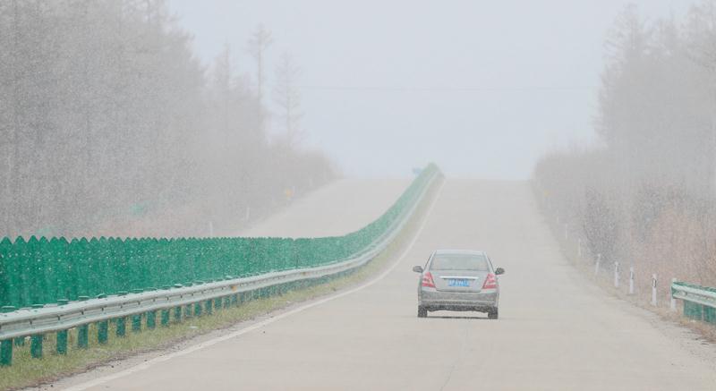 由於降雪導致道路濕滑,能見度低,部分路面出現結冰,漠河市交通警察大隊及時組織警力上路疏導交通,提醒車輛和行人減速慢行。