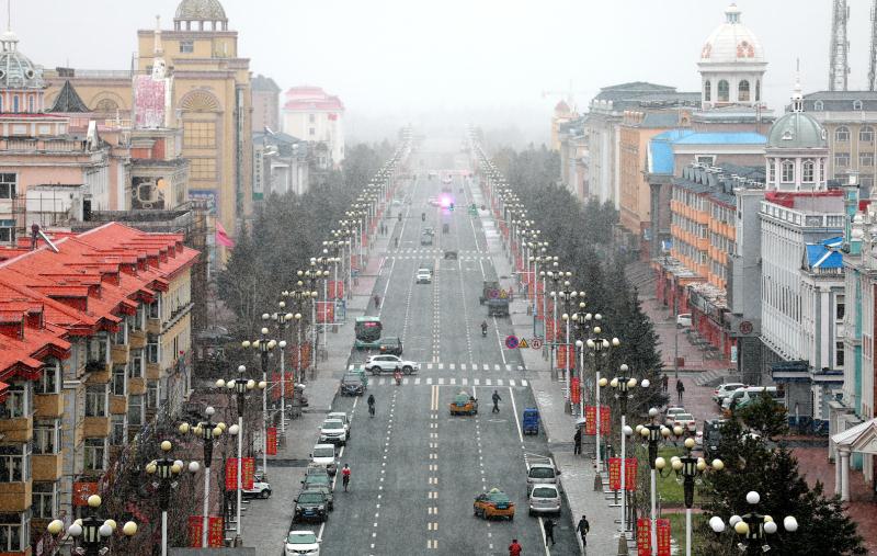 早晨7點左右,飄飄灑灑的雪花從天而降,整個漠河籠罩在白蒙蒙的雪幕當中,讓人仿佛置身童話世界一般,居民紛紛換上了厚厚的冬裝抵禦寒冷。居民劉穎說,今年可能是閏月的原因,氣溫比往年同期高一些,雪下的也晚,十月中旬了才下第一場雪,自己早已經穿上絨衣絨褲了,感覺不是太冷。