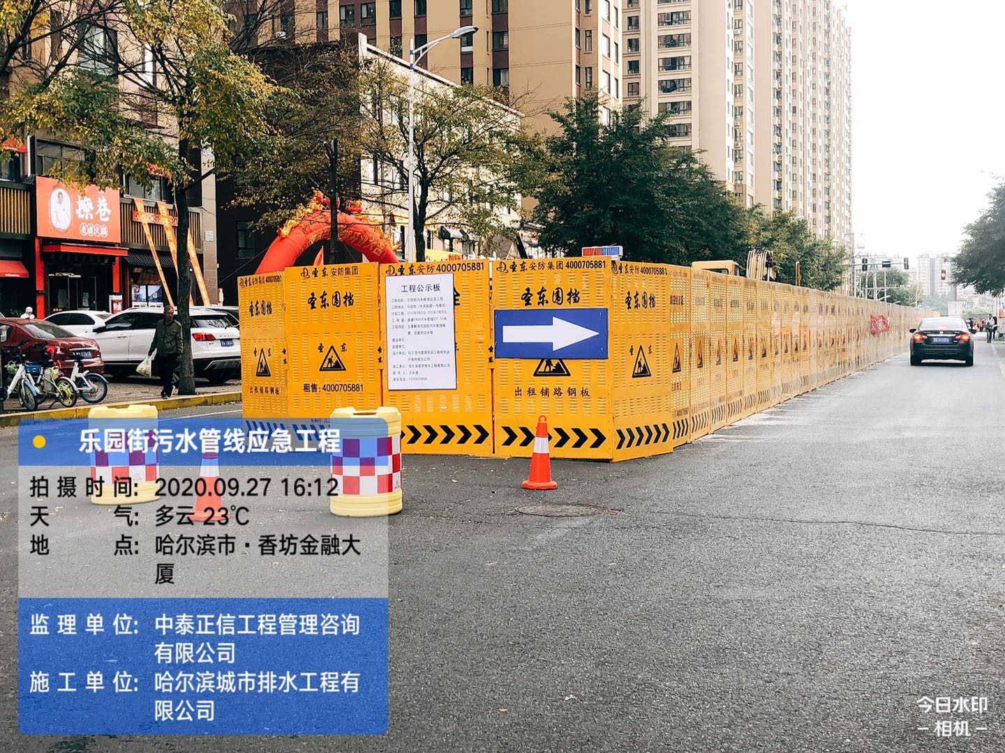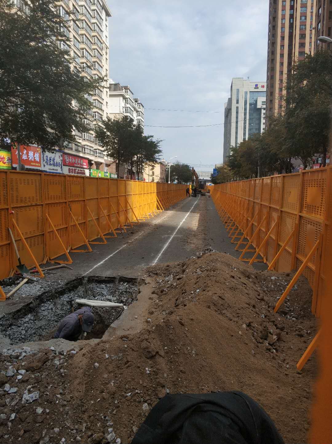 該項目位於樂園街,由大慶輔路至電教街新建污水管線。針對樂園街沿線設有早市、日市及夜市、周邊又存在學校和多個小區、車流人流較大、交通情況極為複雜、尤其早晚高峰交通壓力巨大的情況。為儘快開工建設、加快施工進度,香坊區住建局積極協調各相關單位通力合作、全力推進工程施工。