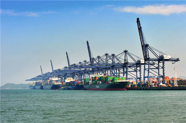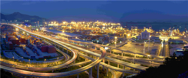 夜幕下繁忙的鹽田港全景。(黃翀攝)