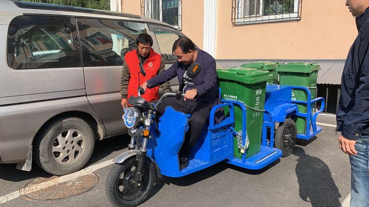 香坊區城管局局長於福彥來到安樂街道檢查指導垃圾分類工作,親自試駕、操作小型廚餘垃圾轉運車,對車輛轉運工作進行指導,對辦事處垃圾分類工作提出具體要求。