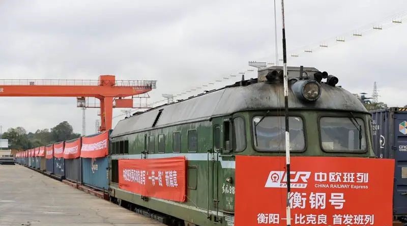 【香港商報網訊】10月15日上午,中歐貨運班列「衡陽——比克良」首發列車國際貨運班列首發式在鐵路衡陽南站舉行。該貨運班列將從衡陽南站出發,駛往俄羅斯西部城市比克良市。這是衡陽首次開通至歐洲國家的鐵路國際物流通道。湖南省人民政府副秘書長陳獻春宣佈發車。衡陽市委書記鄧群策出席首發儀式並致辭。