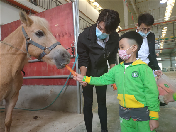 活動現場,來自香港艾樂國際連鎖幼兒園-武漢艾樂國際幼兒園、樂之園幼兒園的50名小朋友在老師及長江馬業國際馬術俱樂部工作人員的陪同下觀看並參與了馬術表演、馬匹投喂、馬背試乘體驗等多項活動。在馬匹投喂體驗中,小朋友排隊為馬匹餵食,在馬背試乘體驗活動中,穿戴好專業馬術護具小朋友們在專業馬術教練的指導下試乘了長江馬業國際馬術俱樂部專為幼兒學員引進的溫血馬。負責體驗活動的長江馬業國際馬術俱樂部馬術教練表示,通過讓幼兒親手投喂馬匹及親身試乘等一系列體驗活動,不僅能夠開拓孩子的視野,培養人與動物和諧共處的觀念,還能幫助幼兒矯正身形,樹立自信。武漢樂之園幼兒園園長翁國煒表示,當前幼兒教育不僅要培養孩子的學習能力,還要注重孩子的全面素質培養,而馬術不僅可以從生理上幫助孩子健康成長,更能夠從心理上幫助孩子樹立自信、勇敢的優良品質。