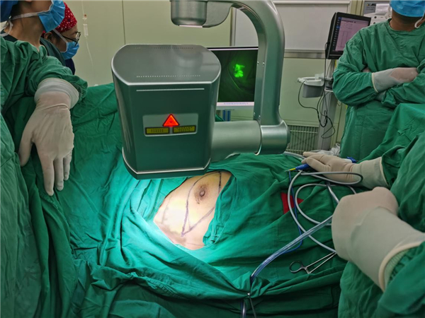 周主任說:利用這項技術,使手術中不僅可以對乳腺癌前哨淋巴結示蹤,同時還可以進行上肢的淋巴示蹤,既能保護上肢的正常淋巴回流不受損傷,同時又能確保前哨淋巴結的準確摘取,避免遺漏,降低復發率,減少術後併發症。