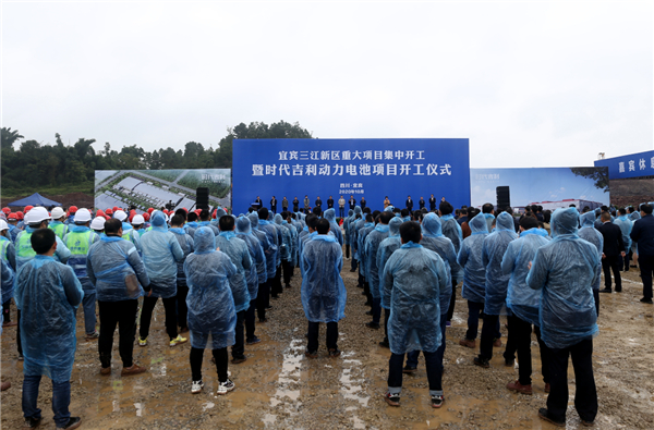 據了解,在此次三江新區集中開工的重大項目中,產業發展類項目12個,總投資311.6億元;基礎設施類項目7個,總投資約28.4億元;民生及社會事業類項目4個,總投資55.6億元。其中,時代吉利動力電池項目落地三江新區,標誌着宜賓市與寧德時代共同打造建設中國西部新能源產業基地邁出了新步伐,也是宜賓市與吉利控股集團合作的里程碑。該項目總投資80億元,佔地面積500畝,生產的產品將主要為吉利新能源汽車提供配套,項目達產後,每年實現產值110億元。