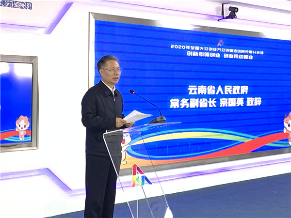 雲南分會場啟動儀式在收看完2020年全國雙創活動周啟動儀式後,在昆明呈貢信息產業園雲上小鎮同步舉行。雲南省委常委、常務副省長宗國英出席雲南分會場啟動儀式並致辭。
