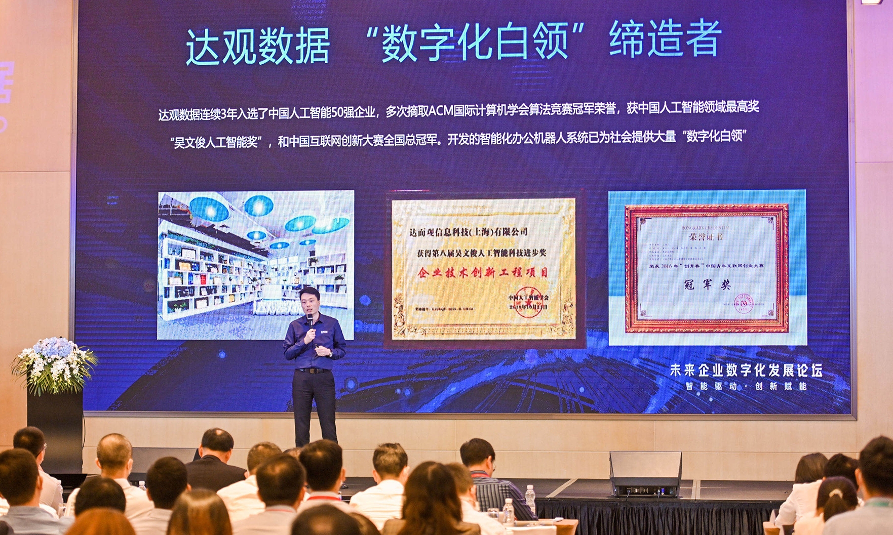 達觀數據創始人陳運文博士以《智能文本處理技術與未來辦公機械人》為題,分享了智能辦公機械人的應用與發展,並在大會上展示了達觀數據推出的材料錄入機械人、票據處理機械人、文檔糾錯機械人、智能審核機械人、自動寫作機械人5大新一代智能辦公機械人集群。