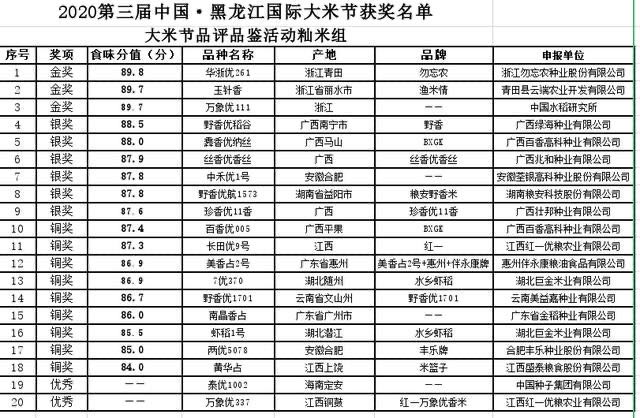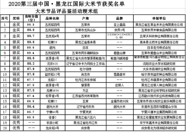 【香港商報網訊】10月17日,記者從第三屆中國·黑龍江國際大米節稻米品評品鑑終評活動上獲悉,現場發佈了稻米品評品鑑終評結果,黑龍江省五常金禾米業有限責任公司的「五優稻四號」、五常京貢米糧食品有限公司的「五優稻四號」、五常沃科收種業有限責任公司「五優稻四號」分別獲得金獎。