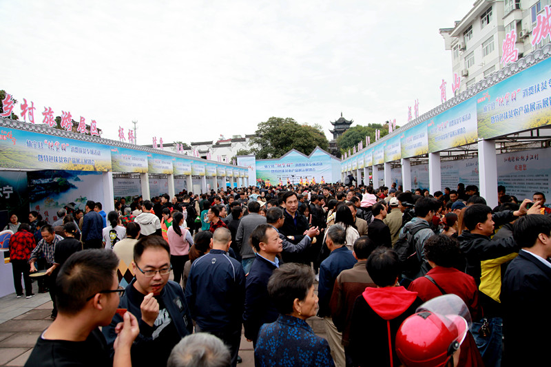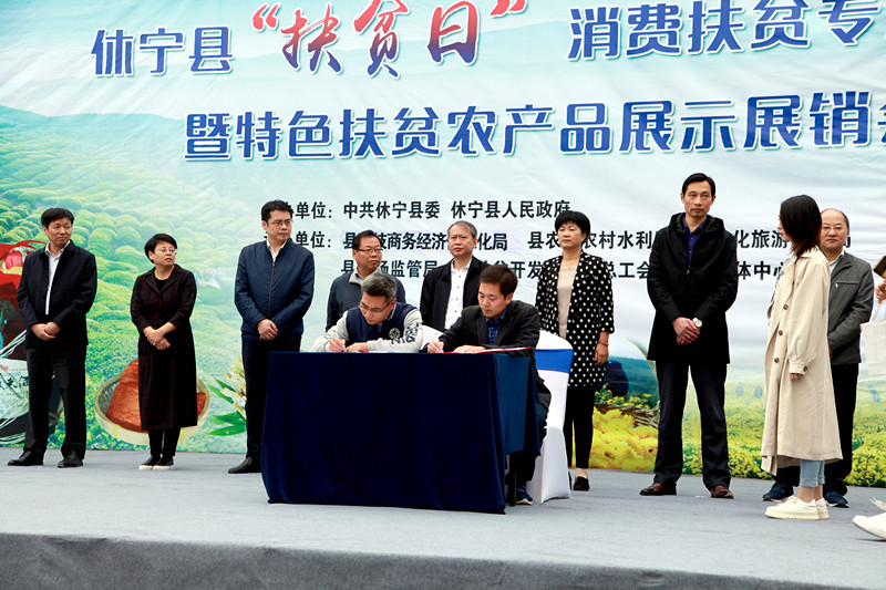 展銷會上,來自全縣21個鄉鎮及8家相關企業的上百餘種特色農產品琳琅滿目,擺滿了展銷臺。米麵糧油、休閒食品、茶類飲品等多品類扶貧產品,供大家選購。現場還設置了脫貧攻堅攝影展、鄉村旅遊展、“舌尖上的休寧美食”等區域,供遊客瞭解休寧自然與人文景觀,品鑒休寧美食。縣融媒體中心以及各扶貧產品生產企業在現場進行直播帶貨,推介家鄉扶貧好物,助力消費扶貧。