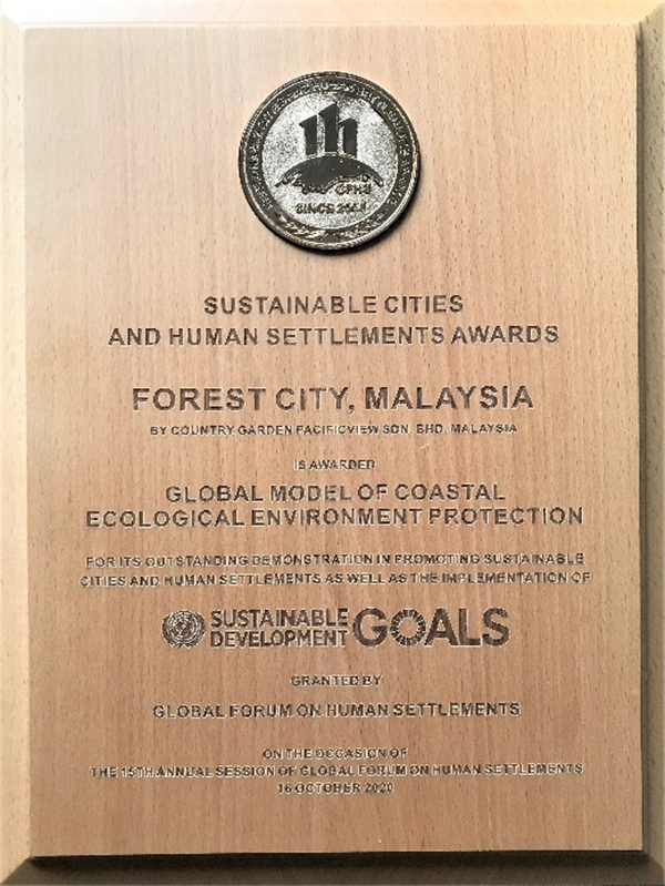 近日,聯合國「城市十月」紀念活動——第十五屆全球人居環境論壇年會(GFHS 2020)採用線上線下結合形式舉行,正式揭曉2020可持續城市與人居環境獎頒獎盛典(SCAHSA·颯颯獎)。位於馬來西亞柔佛州的碧桂園海外項目--森林城市憑藉出色的城市綠色生態系統建設與發展,用環保理念貫穿城市規劃、開發建設和城市運營,榮獲「2020年可持續城市與人居環境獎(SCAHSA·颯颯獎)濱海生態環境保護範例獎」。