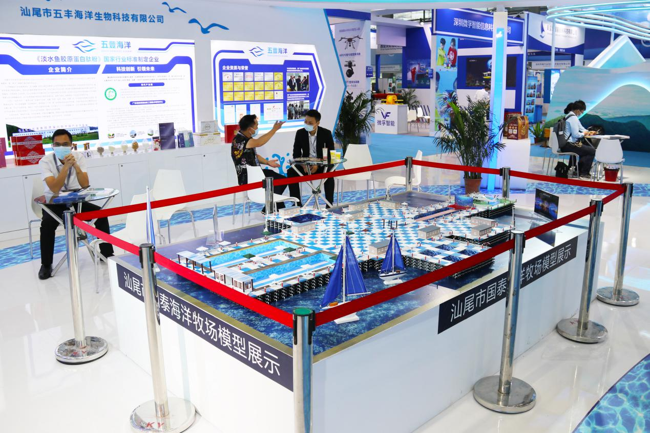 記者在展會現場看到,國泰海洋牧場規劃沙盤吸引了眾多參展人員駐足觀看,來自水產育苗、海洋裝備、水產養殖等海洋牧場相關產業鏈的企業家紛紛來到展台就相關領域進行溝通交流,尋求合作。據汕尾市國泰食品有限公司有關負責人介紹,海洋牧場是對海洋資源的綜合開發利用,兼具生態修復功能。國泰海洋牧場以打造集養殖、休閒垂釣、科普、餐飲、旅遊觀光、遊艇出租等多功能於一體的海洋生態牧場綜合體,通過海洋牧場的建設,將大大改善海域生態環境質量,促進海洋漁業持續健康發展,真正實現了經濟效益和生態效益的共贏。