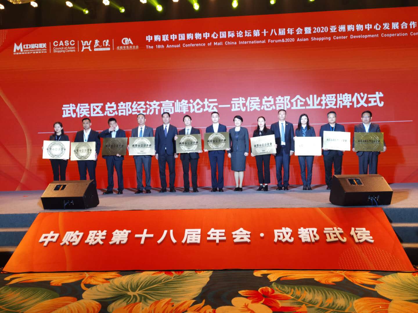 峰會現場,新認定的成都武侯資本投資管理集團有限公司、成都市路橋工程股份有限公司、四川成渝高速公路股份有限公司、領地集團股份有限公司、四川精典汽車服務連鎖股份有限公司、熠暉集團有限公司、中石化四川銷售有限公司、隆生國際建設集團有限公司、四川中泰聯合設計股份有限公司、四川一心堂醫藥連鎖有限公司等10家總部企業被授予武侯總部企業稱號,京東西南總部大廈、兆信中心、紅牌樓廣場三棟總部專業樓宇被授予武侯總部樓宇稱號。(記者 付莉莉)