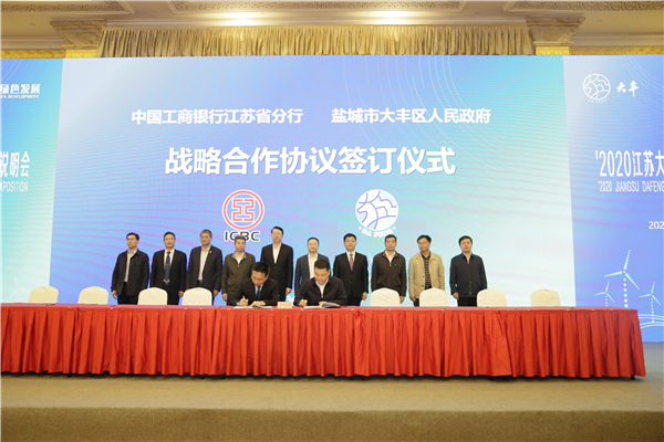 2020江蘇大豐(南京)金融投資說明會10月23日在南京舉辦。會上,中國工商銀行股份有限公司江蘇省分行與大豐區人民政府簽訂戰略合作協議,未來五年擬對大豐重點企業、重點項目、小微企業提供意向性金融支持60億元