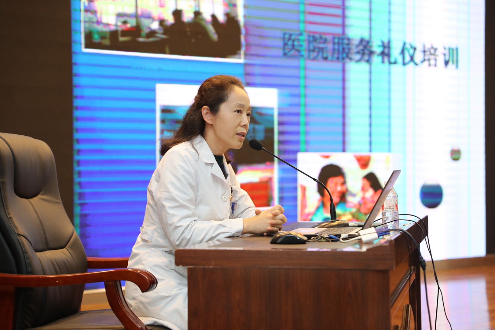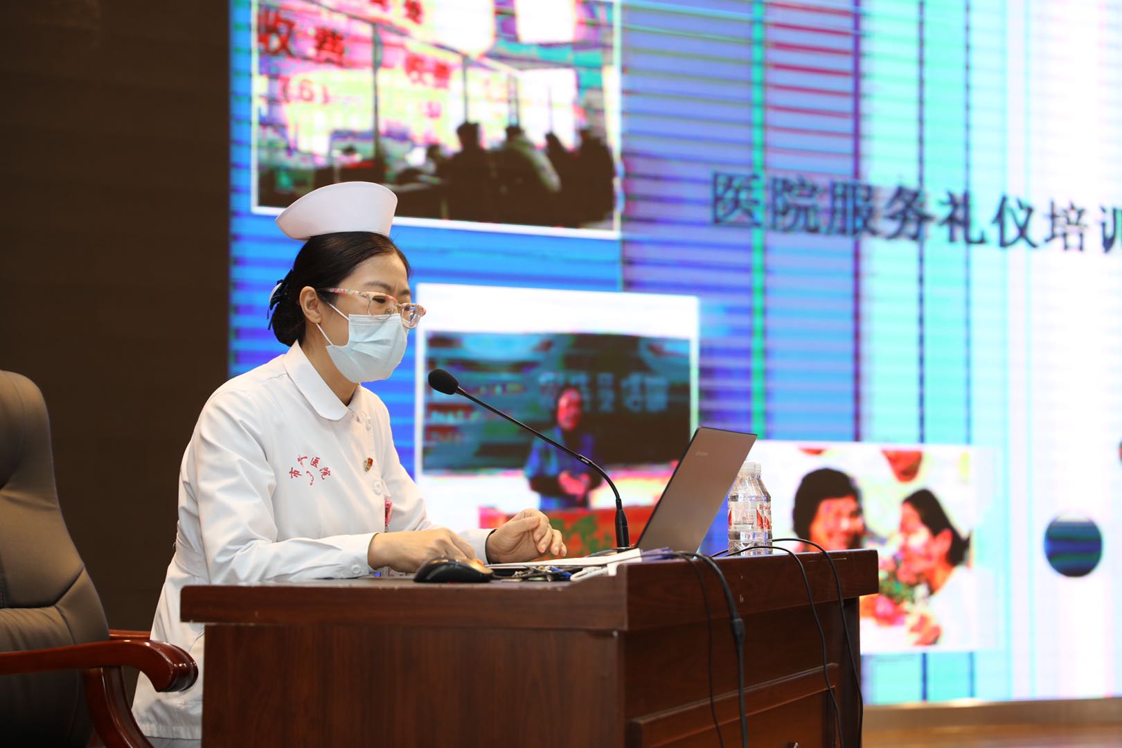 10月21日,結合醫院實際情況對照《哈爾濱市第一醫院工作人員工作紀律》和《哈爾濱市第一醫院工作人員行為準則》規定,特別安排護理部禮儀培訓組劉墨護士長為機關、職能科室、後勤、保安、保潔、門診診室、導診及門診窗口科室等人員做「提高服務質量規範化專項培訓」,樹立全院人員服務意識,做好細節服務和服務細節,提升百姓就醫獲得感。