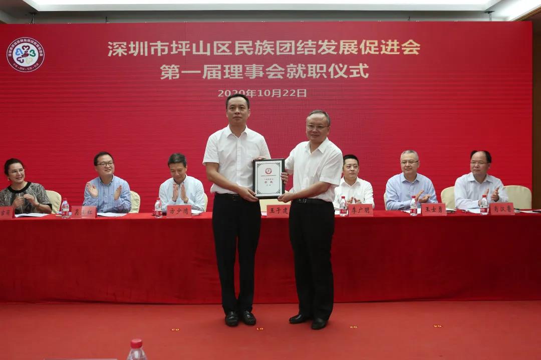 10月22日,深圳市坪山區舉行民族團結發展促進會成立大會暨「民族之家」揭牌儀式,深圳市委統戰部副部長、民宗局局長王子建,區委常委、統戰部部長李廣明,市民族團結發展促進會副會長茹仙古麗,市、區統戰部門相關負責同志以及各街道分管統戰工作同志出席會議。會議選舉產生了坪山區民族團結髮展促進會第一屆理事會成員。