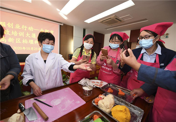 據悉,為助力貧困家庭和剩餘勞動力及婦女再就業,拓展婦女創業就業渠道,推動貧困婦女脫貧致富,合肥柏堰科技園邀請了合肥市婦聯「巾幗創業行動——大蓬車進社區」開展此次培訓,後期還將聯合家政公司、職業培訓學校等,組織開展手工製作、水果拼盤、麵點技能、小兒推拿和育嬰、家政服務、養老等技能培訓,為待就業女性、失業女性創造就業平台。(柏永 胡章勤)