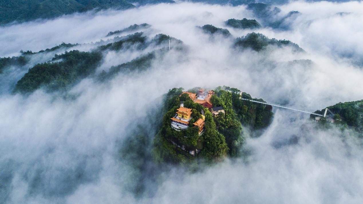 禪音裊裊,雲霧纏繞,天龍山寺群山拱翠
