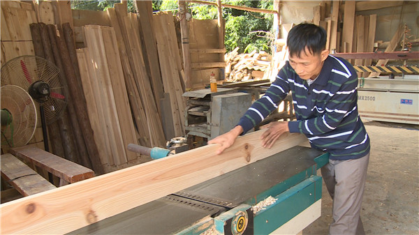 走進羅中村貧困戶吳仕賢家中,一棟新建的三層樓房映入眼簾。樓房的一層擺滿了木材,有加工好的桌板和床板,吳仕賢通過自身木工技術活,生產加工木製品銷售。而他的自主創業,在2016年精準扶貧工作開展之前是無法想象的。