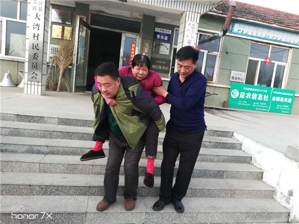 在入戶走訪中發現71歲李長富耳背,老郭幫助李長富辦理了二級殘疾證,2019年7月老人又患了膀胱癌,當老李手術回來後,老郭購買營養品去慰問,他激動得掉下了眼淚。2019年11月,老郭又領李長富老兩口到縣醫院進行免費體檢。12月4日,李長富為工作隊送來一面錦旗,上寫:「關愛百姓辦實事實事求是,扶貧致富新氣象深得民心」。